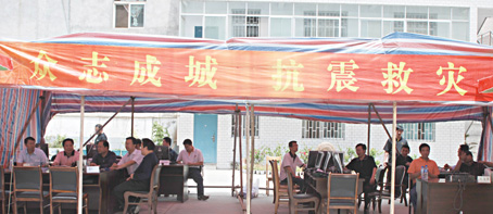 余震中,陇南分行员工积极搬运物资,搭建临时帐篷,确保及时恢复营业,开展工作。