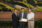 2013年7月22日下午,中国外交部马朝旭部长助理和中国国际贸易促进委员会于平副会长一行专程来访,向中国建设银行董事长王洪章颁发APEC工商咨询理事会(ABAC)中国候任代表证书。