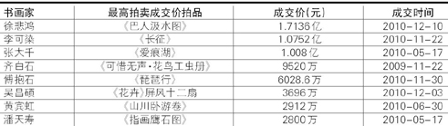 近年近现代书画大家伤口拍卖市场最高成交价表