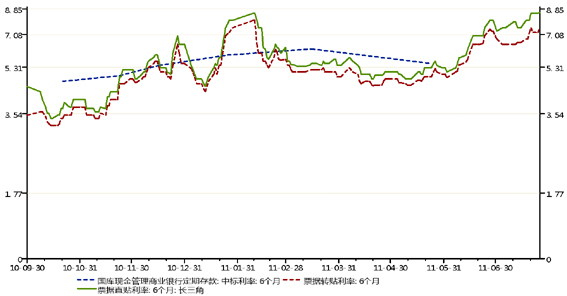 从2011年年初开始,银行间市场资金供给异常紧张,M0在1月同比增幅达到创纪录的40%,一揽子的紧缩政策和节日因素制约,导致银行体系超储率逐步走低,以往在货币市场融出资金的大行开始融入资金。