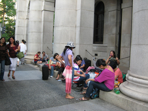 在香港,一线品牌除了固定打折季外,多会有一次private sale,给它自己的粉丝一个购买的机会,这些涌动的人群,悠然自得的等待着挑选自己的心头好。另一边,菲佣们也在享受着她们每周一日法定的假日,这一天,她们相约结伴来到皇后广场,放着自带录音机里的音乐载歌载舞。当然,周末的香港也少不了虔诚的信徒,礼拜活动可以由JAZZ乐团伴奏颂唱教歌。