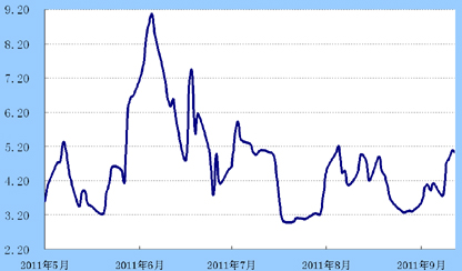 货币市场:虽然央行连续十一周实现净投放,但受季末冲时点、国庆节长假、10月份增缴准备金等一系列因素影响,银行间市场资金面依然较为紧张