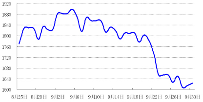 九月最后一周,黄金走势依旧疲软,现货黄金价格在每盎司1600美元上方震荡。受欧洲债务危机以及经济前景堪忧影响,国际原油价格震荡下行