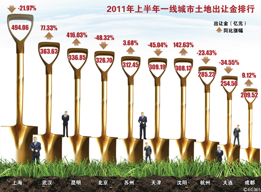 2011年上半年,全国130个城市土地出让收入总额为7524亿元,同比下跌5.5%。收入排名前十的城市中,下跌的5个城市全部为一线城市或者发达的二线城市。土地出让金,实际上就是土地所有者出让土地使用权若干年限的地租之总和。现行的土地出让金的实质,可概括为既有累计若干年的地租性质,又有一次性收取的似税非税性质的矛盾复合体。它具有地租而非税性质,已成为地方政府预算外收入的主要来源。