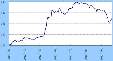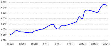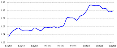 货币市场:由于国庆长假即将来临,市场流动性渐趋紧张,尽管央行净投放1010亿元人民币,7天质押式回购利率仍较前周上行107个基点至4.4277%