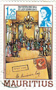 说起这套邮票的发行还有一个故事,1947年毛里求斯为英属殖民地,这一年该岛总督夫人准备举办—次舞会,她要求毛里求斯邮政局为舞会专门寄发请柬,为此毛里求斯特别赶制出来首套邮票,封分别是橘红色的1便士和深蓝色的2便士。这套邮票由约瑟夫·欧斯蒙德·巴纳德(JosephOsmond Bamard)使用一块 3 1/4 英寸×2 1/2英寸的铜板进行雕刻,用凹版印刷,并在整版邮票最右边边纸签有设计者名字的缩写“JB”。邮票画面模仿英国当年流通的便士邮票设计,中央图案为维多利亚女王侧面头像,因左侧印有“邮局”(Post Office)字样而得名毛里求斯“邮局”邮票。此套邮票于1847年9月21日发行,每种面值各印500枚,其中大部分被总督夫人戈姆(Gomm)女士用于邮寄她在周末举行舞会的请柬,余下部分则于当年9月21日在邮局向公众发售。按原来打算,这套邮票还将印刷多批,但因邮票面世后即有人指出上面的铭文“毛里求斯邮政局”用词失当而决定不再重印,同时立即委托巴纳德另制新版、筹印改版邮票。改版后的邮票于次年6月发行,图案、刷色和面值均照旧,仅人像左方的文字由“邮政局” (Post Office)改为“邮政已付”(Post Paid)。至此,各方认为设计已臻完美,再无瑕可击。在接下来的11年间,这种改版后的图文邮票被多次增印,据考证光是为此而由巴纳德先后刻制的印版即有5种之多,再后于1859年3月和11月,又先后增发了二批分别由J.拉比洛特和凡·休文制版印刷的同图邮票,其刷色、面值及文字都一仍其旧。