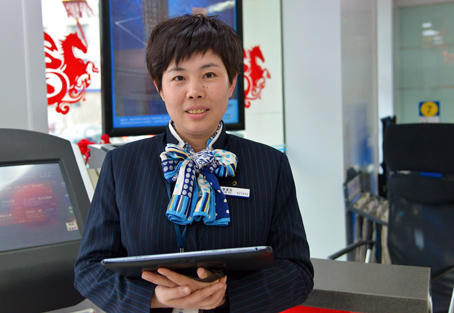 记者的话:采访李秀云,赶巧儿她正忙着处理断电事件,不知何因,UBS也续不上电,她急得跑前跑后,手机打个不停,象征着大堂值日的平板电脑却一刻没有离开她的手,满屋地的客户在等候区安静地坐着,没有人很大声的质问,这和我记忆中的乡镇网点倒有些不太一样。