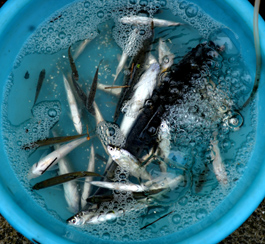 新鲜的鱼货从江中捕捞而来,各个品种数量很少。
