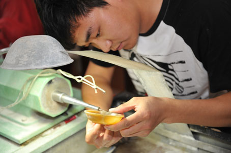 一开始学徒那会儿,闫楠坐不住,干一会儿就想站起来,但严厉的师傅说,坐不住就不要干这行。后来慢慢就坐住了,现在每天坐8个小时也不累了。