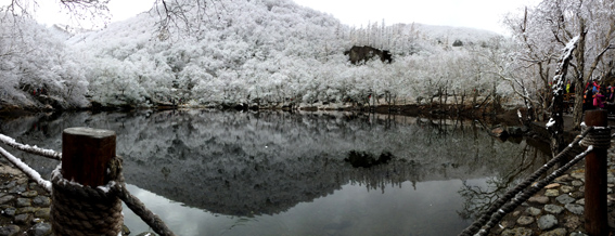 雪岭界天人不到,冰池耀日俗难观。听说,冬季里领略长白山美景要对机遇,更看运气,能看到雾凇亦是幸运,更别提俯瞰天池全貌。多少人抵达长白山却因未睹美景而心怀遗憾,又有多少人不甘错过美景而久久等待,周而往复。我们是幸运的,十一长假说走就走来到天池,雪花中天池主峰在云开日出一霎开放了,疯了一般的人群涌向售票口,我们顺利抢到门票。冥冥之中又被一双手挽留,进而有幸一览美景。 小咏/图文