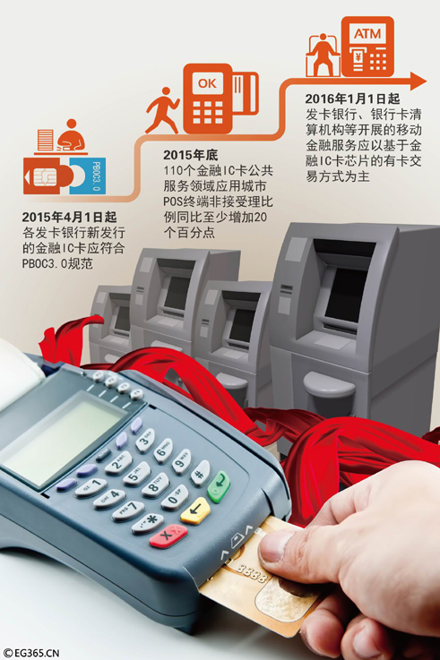 截至2014年第三季度末,我国金融IC卡累计发卡量突破10亿张,其中,全国性商业银行累计发卡量超过9亿张,区域性商业银行累计发卡量超过1亿张。2014年前三季度新增金融IC卡4.5亿张,占新增银行卡发卡量的比例超过80%,IC卡已成为我国新发银行卡的主流产品。全国银联磁条卡存量达34.42亿张,要换成芯片银行卡,成本将数以百亿元计。图/CFP