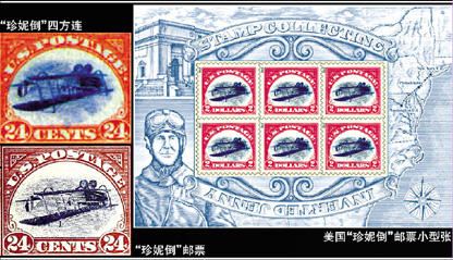 桑德曼的伤心并不令人同情,因为他为了钱而食言。现在让我们回到本文开头的小全张上,在该张的边纸上还有不少内容:包括首都华盛顿的国家邮政博物馆,华盛顿、费城和纽约之间的第一个定期航空邮件服务路线,以及作为该航线的首批航空邮政件飞行员之一——航空先驱鲁本·弗利特(Reuben H. Fleet)。或许,小型张所蕴含的内容更加丰富,惟作为一个传奇,“珍妮倒”邮票将依然续写其历史。