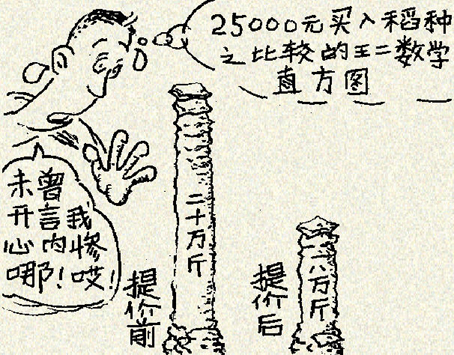 王二却不高兴了。粮价没提高前,25000元能买20万斤稻。现在粮价涨了,这笔钱只能买8万多斤稻,多年的积蓄一夜之间就被公家抹掉了一半多。