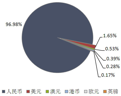 从投资币种来看,人民币产品发行了3473款,环比减少975款,市场占比下降0.28个百分点至96.98%;美元产品发行了59款,环比减少7款,市场占比上升0.20个百分点至1.65%;澳元产品发行了19款,环比减少6款,市场占比下降0.02个百分点至0.53%;港币产品发行了14款,环比减少4款,市场占比仍然为0.39%;欧元产品发行了10款,环比减少2款,市场占比上升0.02个百分点至0.28%;英镑产品发行了6款,环比增加2款,市场占比上升0.08个百分点至0.17%。(图2