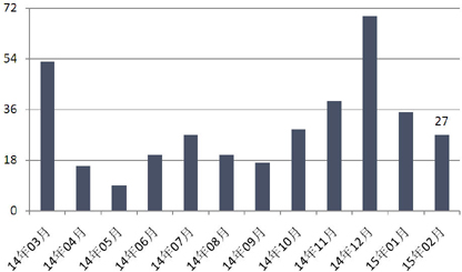 受春节假期影响,本月银行理财产品发行数量环比大幅下滑,短期产品收益水平出现上涨,中长期则有所下跌;信托产品发行数量再降,但依然高出同比七成有余。“安慰函”只是安慰函,预计今后的政信合作项目中,人大预算决议将会成为标配;阳光私募产品发行数量继续回落,首只投资期权阳光私募上市。7家机构共发行了39款券商理财产品,股票型产品时隔14个月再现;投连险账户净值继续普涨,保险资管公司引入风险责任人制度,风险监管将是今年重点。
