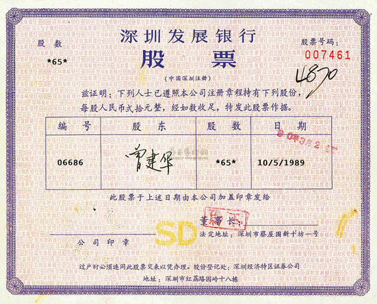股票凭证收集与投资范围不仅局限于股票本身,还包括认购股票的认购证,即通常所言的股票申请表和抽签表等。作为股市发展的一种重要凭证,记录了一段时期的经济发展轨迹,因此具有极大收藏价值。应该说在中国,股票是种“引进”产物,与西方资本主义国家相比存在的历史要短得多,从清朝至今也只有百余年的时间,而且相当长的一段时间股票在中国大地上踪影难觅。不过随着社会主义市场经济体系的确立,在中国人眼前消失多年的股票又重现,1983年沿海经济特区中的深圳宝安县联合投资公司开始股份制企业试点改革,并向公众发售股票,揭开了新中国股票大规模发行的序幕,也为此后的股票证券交易奠定基础。
