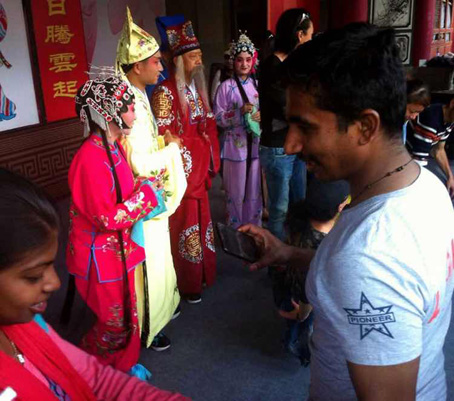 农历三月十五,云南大理“三月街”,电影《五朵金花》里有介绍,是当地传统的物资交流、文化交流、体育交流的活动。今年,盛况依然,人山人海,上午赛马刚结束,下午的演出又开始,两名外国留学生情侣显然对中国戏剧产生兴趣,左拍右拍。旁边的少数民族女孩对对外国女孩的服装感兴趣,邀请她合影,“古今中外”同图。三月街的重头戏是商贸,各地商贾云集练摊,有买有卖,有凑热闹闲逛的。今年,也加强了安保,人群密集,大意不得。■ 公孙欠谀/图文