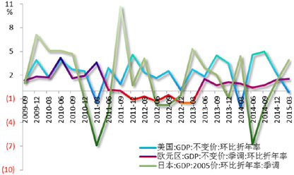 图1 除美国经济增速受暂时性因素影响外,欧日均回升