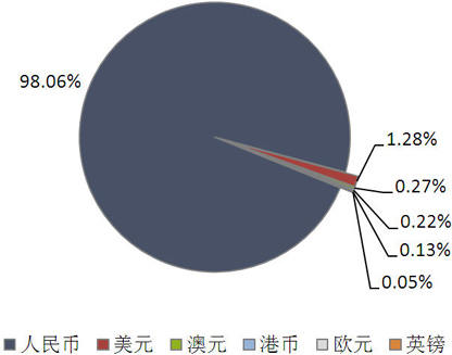 从投资币种来看,人民币产品发行了5445款,环比减少691款,市场占比下降0.04个百分点至98.06%;美元产品发行了71款,环比减少4款,市场占比上升0.08个百分点至1.28%;澳元产品发行了15款,环比减少3款,市场占比下降0.02个百分点至0.27%;港币产品发行了12款,与上月持平,市场占比上升0.021个百分点至0.22%;欧元产品发行了7款,环比减少4款,市场占比下降0.05个百分点至0.13%;英镑产品发行了3款,与上月持平,市场占比与上月持平,仍为0.05%。(图2)