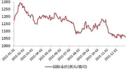 2015年国际黄金现货市场开于1184.37美元/盎司,收于1061.10美元/盎司,最高价1307.62美元/盎司,最低价1046.44美元/盎司。国内方面,上海金交所黄金9999开于237.42元/克,收于222.86元/克,最高价280.00元/克,最低价210.79元/克。