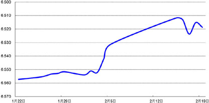 受春节期间美元走弱影响,节后美元对人民币中间价相应走低,即期市场成交价在节后第一个交易日大幅下跌,随后几日收复部分跌幅。周五,美元对人民币收报6.5204,较节前贬值0.75%。