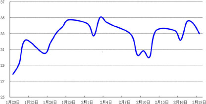 债券市场:节后宽松的资金面令短债需求旺盛,但1月金融数据全面走高令债市乐观情绪收敛。2月19日,中债总指数报168.25,较节前上涨0.35。