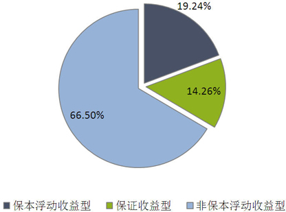 从收益类型来看,保证收益型产品发行了920款,环比减少456款,市场占比下降3.48个百分点至14.26%;保本浮动收益型产品发行了1241款,环比减少149款,市场占比上升1.31个百分点至19.24%;非保本浮动收益型产品发行了4290款,环比减少699款,市场占比上升2.17个百分点至66.50%。(图1)