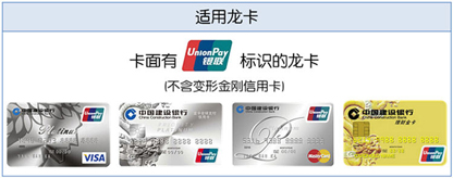 建设银行还为客户推出优惠活动:2016/2/20-2016/4/24的每周六日(含2/22元宵节)在家乐福、星巴克等全国各门店中使用龙卡Apple Pay消费享满50元(含)立减20元!