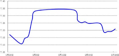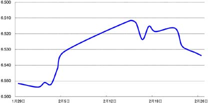 受春节期间美元走弱影响,节后美元对人民币中间价相应走低,即期市场成交价在节后第一个交易日大幅下跌,随后几日收复部分跌幅。周五,美元对人民币收报6.5204,较节前贬值0.75%。