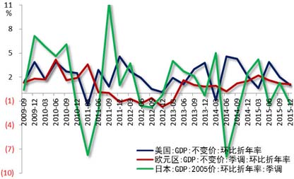 美国经济增长略显疲态,市场关注美联储加息节奏。2016年1月非农就业人口增长15.1万,不及预期的19万,但失业率降至4.9%,为2008年以来新低;1月密歇根大学消费者信心指数终值92,略低于预期的93.0,亦低于1月初值93.3;1月ISM制造业指数48.2,不及预期的48.5,但略高于12月的48.0。1月成屋销售总数年化547万户,高于预期的532万户,创2007年2月以来第二高位。美国四季度实际GDP年化季环比修正值为增长1.0%,远超市场此前预期的增长0.4%,也好于初值增长0.7%。综观整个2015年,补库存推动了全年GDP,也最终让四季度的美国经济免于收缩。未来还需关注美联储的加息节奏。