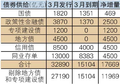 表2 3月新增债券需求预测(不考虑地方政府债和专项债)