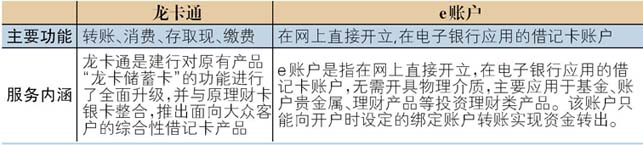 建设银行龙卡通和e账户的区别