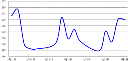 上周,因美联储公布的3月货币政策会议纪要偏鸽派,打压美元,加之市场避险情绪占主导,拉动国际金价上涨,周五收盘于1240.01美元/盎司,较前一周上涨1.46%