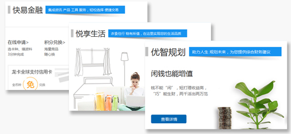 首先,用户可利用网站首页清晰楼层展示使用各项产品服务。如用户通过优智规划场景,可以学习如何规划校园生活、如何吃喝玩乐却能消而不费、怎样让留学创业后顾无忧,学习如何根据资金和时间限制选择投资产品、怎样更有技巧的理财和他人成功理财案例等;通过快易金融悦享生活个性专属聚焦金融/非金融生活点滴、管理个人中心,实现足不出户学习并完成投资理财、缴费支付、买房购物、资讯查询等金融与非金融服务。