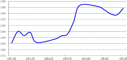 上周初,因美元走强,国际金价从高位下跌;周五,美国公布的就业数据不及预期,美联储加息预期降温,国际金价上涨,收报1288.30美元/盎司,较前一周仍小幅下跌0.39%。