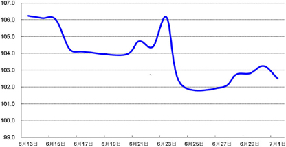 货币市场:上周,在平稳度过季末及MPA考核后,质押式回购主要品种收益率明显下降,其中,7天期品种收益率较前一周下行17个基点至2.38%。