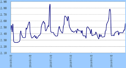 货币市场:上周,在缴税因素影响下,银行间市场流动性趋紧,但在央行续作MLF(中期借贷便利)并增加逆回购操作规模的支撑下,质押式回购主要品种收益率并未出现大幅波动,其中,7天期品种收益率上行14个基点至2.56%。