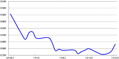 上周初,受美元指数大涨影响,人民币中间价走低,即期市场成交价承压下行,周一收盘在逾五年半新低,且夜盘时段跌破6.7元关口;此后,客盘结汇力量增强,人民币稳步上涨,周五收报6.6704,当周累计上涨0.15%。