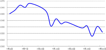 上周,国际金价维持震荡:受美国经济数据向好及美元走强的影响,周初,国际金价承压下跌,并触及近三周低点;随后,因美元走软,加之欧洲央行维持利率决议不变,金价小幅回升,但投资者的获利了结再度带动金价下跌。周五收于1322.01美元/盎司,较前一周下跌1.15%。