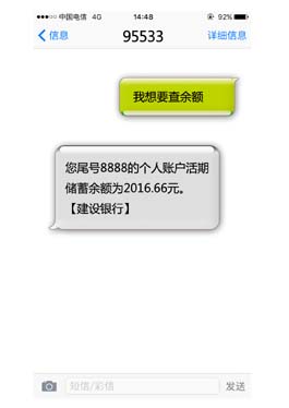 建行短信银行许多查询类业务非常便捷,能够满足用户随时查询的需求,但需要用户编写复杂的查询代码,一定程度上降低了用户体验。智能小微服务就可以解决这一问题,通过对用户语言的分析,将之与标准化指令相对应,让用户只需发送自然语言类短信就可以进行相关业务查询。目前可以实现的有储蓄账户余额查询、明细查询、信用卡余额查询、额度查询、本期账单查询、积分查询、短信服务的状态及签约账户查询等多种功能。