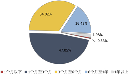 随着央行逆回购操作的持续展开,本月市场资金面呈进一步宽松的趋势,除一周及隔夜拆借利率出现微幅上涨外,两周及以上各关键期限点SHIOR均有所下降。受此影响,本月银行理财产品的收益水平整体上继续保持下滑态势。除了1个月以下的超短期产品利率出现上升而外,其余各期限类型人民币理财产品的平均预期收益率均出现下降。其中6-12个月期限类型产品收益率跌破4%。(表1)