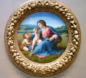 拉斐尔(Raphael),《阿尔巴圣母》(the Alba Madonna),1510年,布面油彩,94.5 cm(直径),安德鲁·梅隆藏品(Andrew W. Mellon Collection),华盛顿国家美术馆(National Gallery of Art, D.C.)