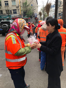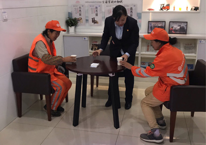 在“环卫工人节”到来之际,辽宁省沈阳铁西支行邀请“城市美容师”到劳动者港湾做客,并为他们送上精心准备的棉质手套、护手霜、水果等日常用品,向他们致以节日的问候和崇高的敬意。同时支行号召全体员工共同维护美好家园,以实际行动感谢“城市美容师”为环境整洁做出的贡献。■ 熊超/图文