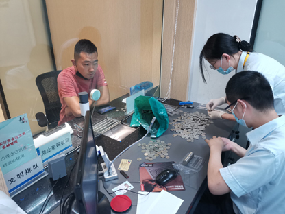 原来,该客户有数十台投币洗衣机,因最近资金周转困难,故想将手上的“烫手山芋”解决。在此之前,他去了两家银行,因为硬币数量太多,网点值班柜台只有一个,暂时无法安排专柜清点,他就抱着试试看的心情来到平湖支行营业部。