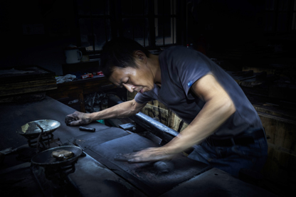 对出生于1957年的周美洪来说,墨厂里有他这辈子都无法与之割舍的情愫。父亲是墨厂的工人,周美洪就在厂区里各个车间里转来转去,也许是天生,也许是受父亲熏陶,周美洪很快就能从墨香的细微差别中判断出徽墨的品种。1979年,周美洪顺理成章接替父亲成为墨厂的一名工人,凭着吃苦耐劳的精神和对徽墨技艺的执着追求,他很快从员工中脱颖而出,成为厂长。2007年,他获评“徽墨制作技艺”国家级非遗传承人。