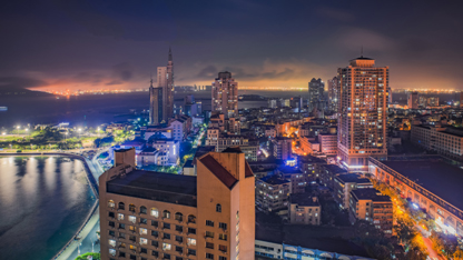 青岛的晨昏、夜色都是美的,在房间里看,或者在海边看,海滨多变的光影给城市呈现出不同的美感。即便是中午,青岛火车站的建筑和前面一片红顶的房子也会相映成趣,形成青岛特别的“绿树红瓦”景象。青岛一中附近的运动场在黄昏的暖光下空荡着,大概是暑假的缘故,看不到学生的喧闹。